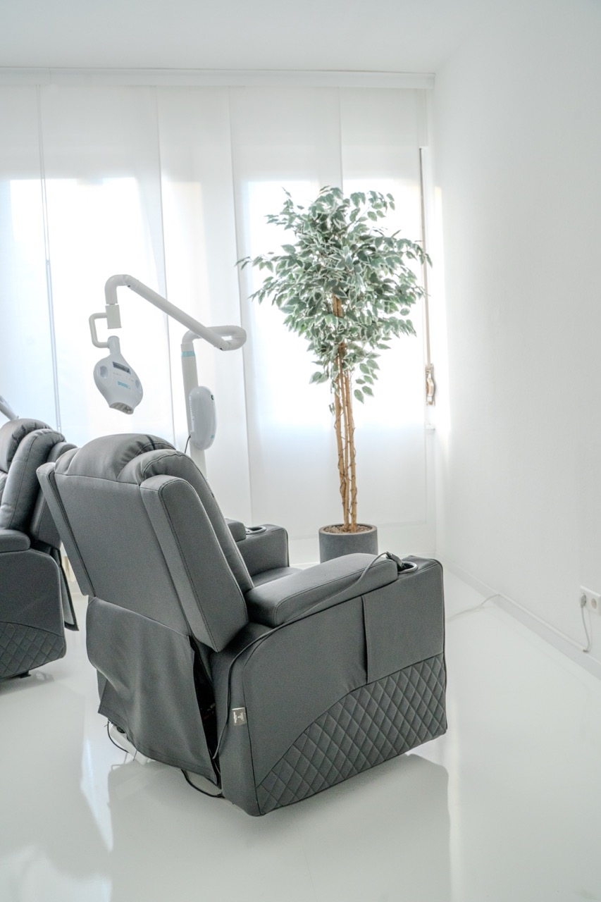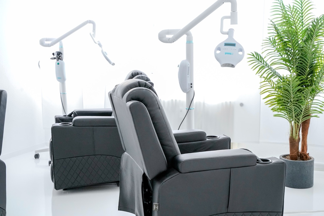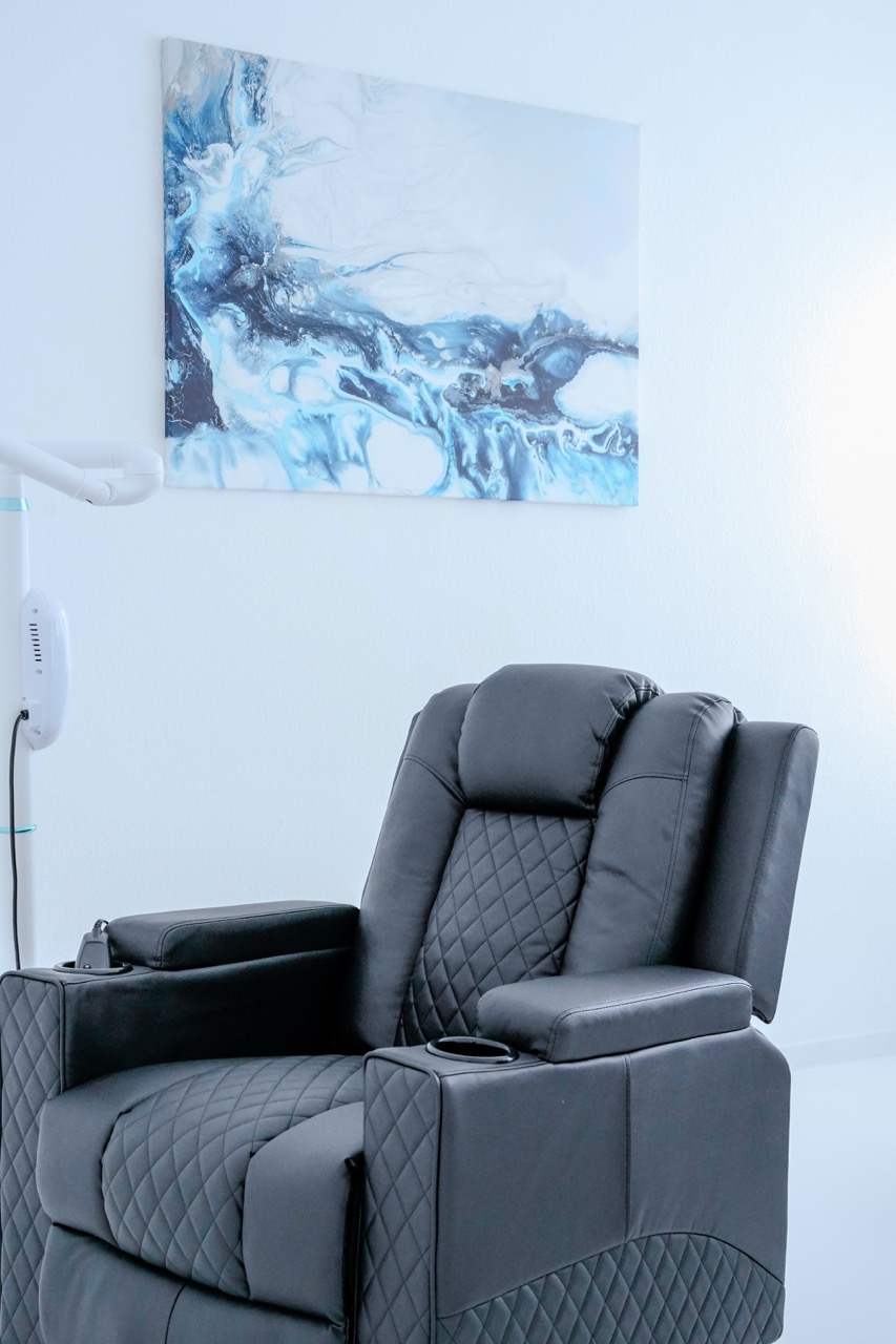 Genieße während deiner Zahnaufhellung in unseren luxuriösen Sesseln mit integrierter Handyhalterung kostenloses WLAN und schaue mit deinen eigenen Kopfhörern entspannt deine Lieblingsserien auf Netflix oder YouTube!